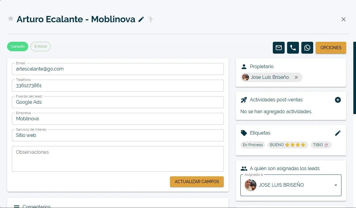 “Dejamos de utilizar hojas de cálculo y esto nos permitió cerrar más ventas. NextLead CRM nos pareció muy simple, intuitivo y poderoso.”